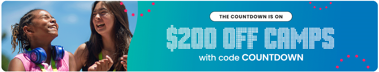 Register with confidence knowing you have complete flexibility! Make changes to your registration anytime (no fees!) until 28 days before camp. Use code COUNTDOWN for: • $200 off camps & academies • $100 off virtual camps • $50 off private lessons Valid for a limited time only. $200 off applies only to on-campus camps and academies. $100 off applies only to virtual camps. $50 off applies only to four packs of private lessons. Promo code may be used once per child per program. Promo code can not be applied to previous purchases or combined with other offers. |
