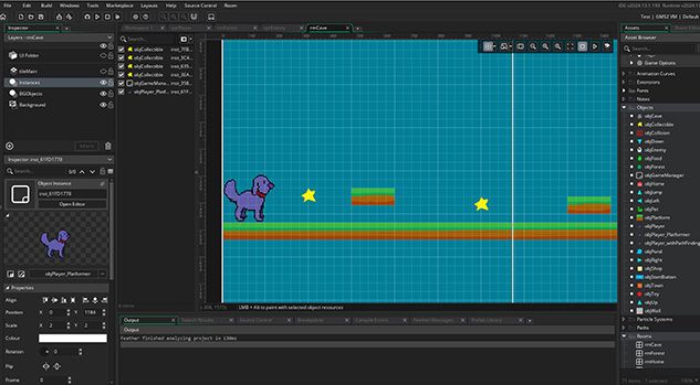 - Use visual code and events to implement game mechanics